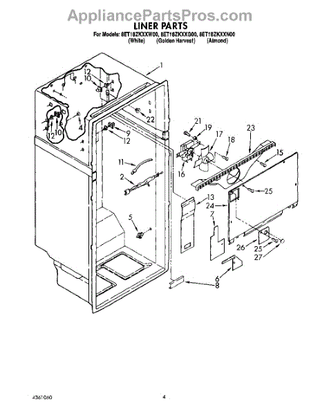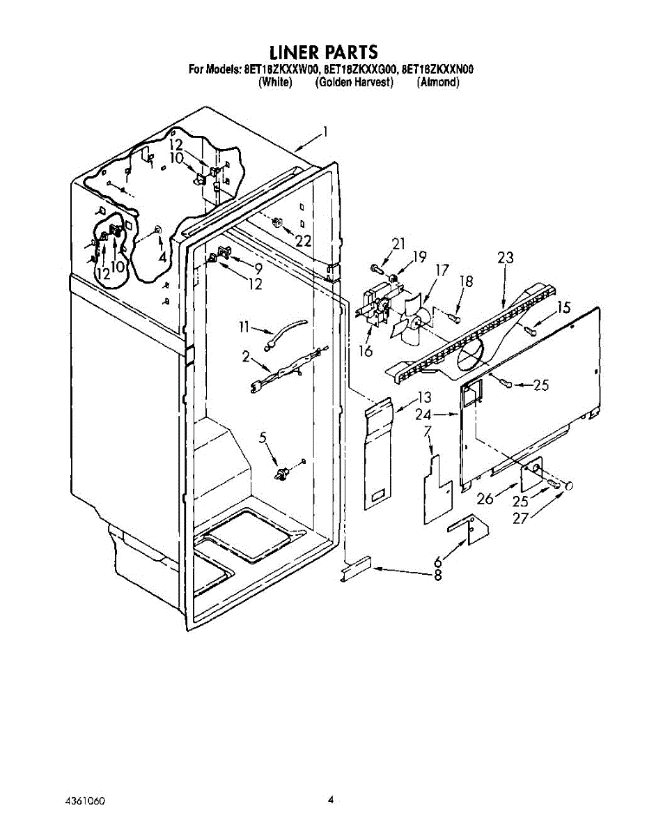 Parts for Whirlpool 8ET18ZKXXW00: 02 - Liner Parts