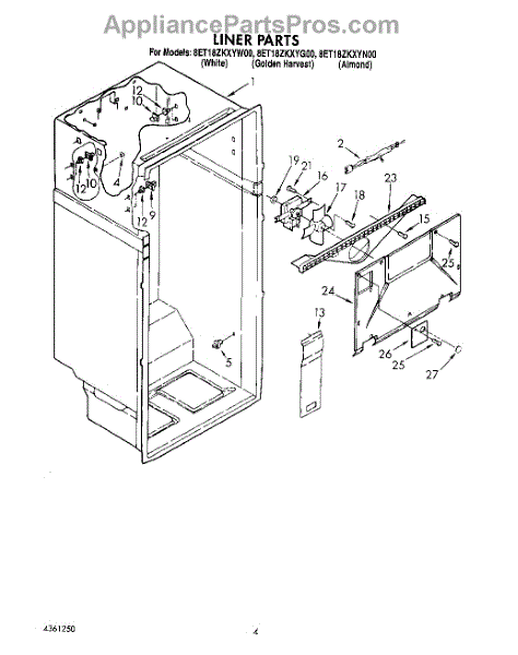 Parts for Whirlpool 8ET18ZKXYN00: 02 - Liner Parts