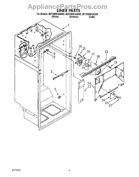 Parts for Whirlpool 8ET20DKXAG00: 02 - Liner Parts