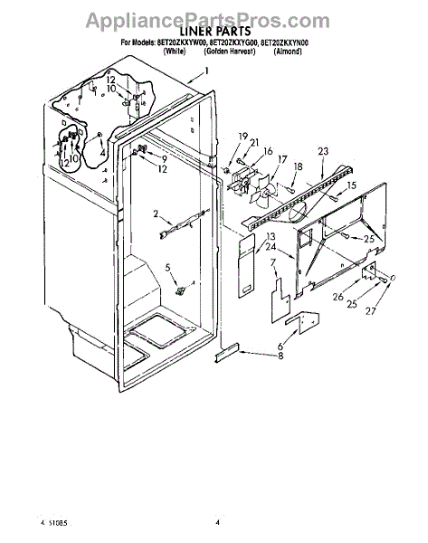 Parts for Whirlpool 8ET20ZKXYN00: 02 - Liner Parts