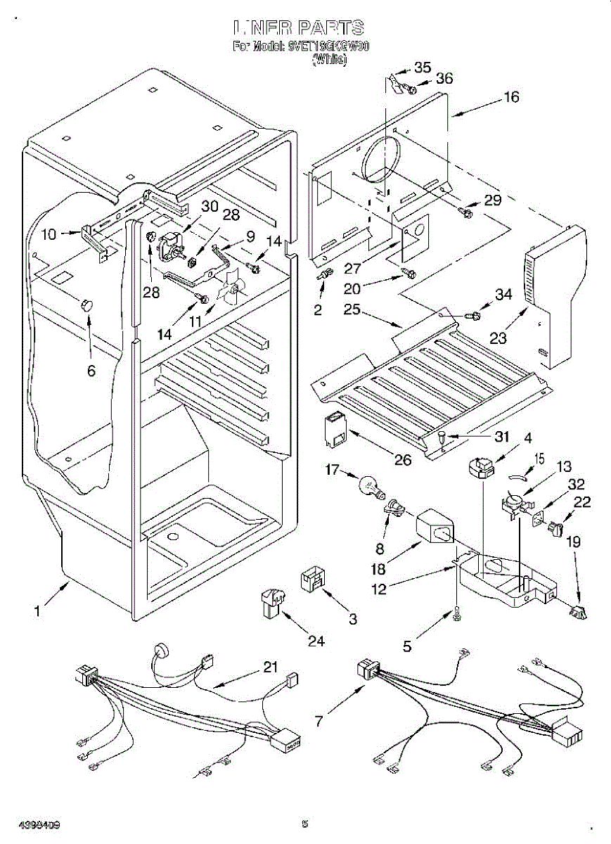 This freezer wire harness links the refrigerator's control system to components inside the freezer compartment. Replacing a compromised harness restores reliable electrical connections and can resolve intermittent or dead freezer functions caused by burned, broken, or corroded wiring.
