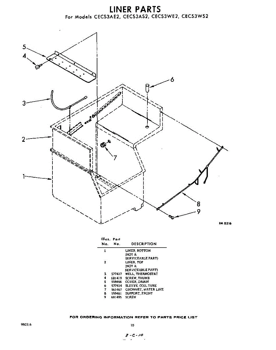 Parts for Whirlpool CECS3WE2: 10 - Liner Parts