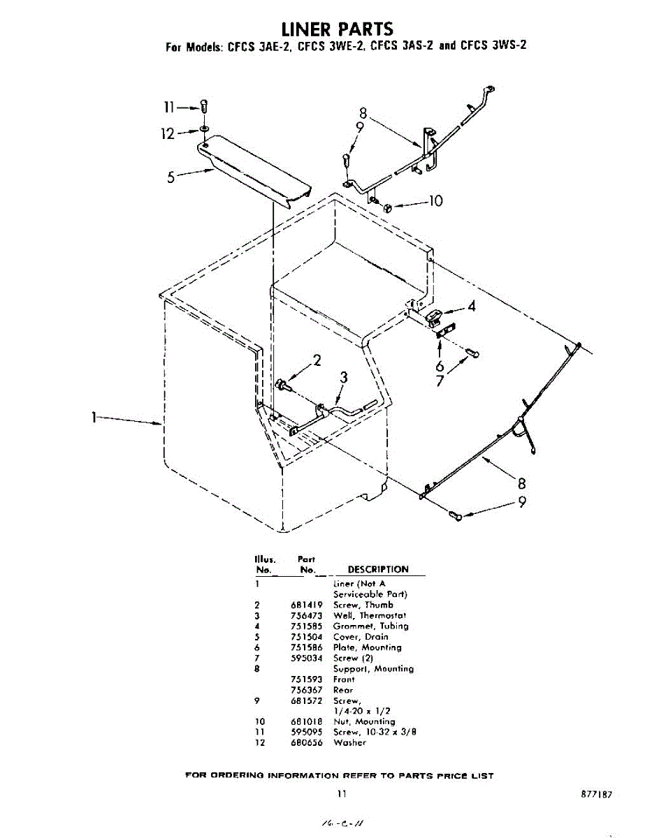 Parts for Whirlpool CFCS3AE2: 11 - Liner Parts