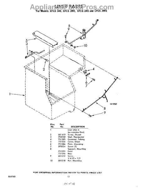 Parts for Whirlpool CFCS3WE: 12 - Liner Parts
