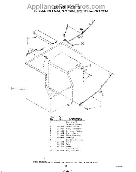 Parts for Whirlpool CFCS3WE1: 11 - Liner Parts