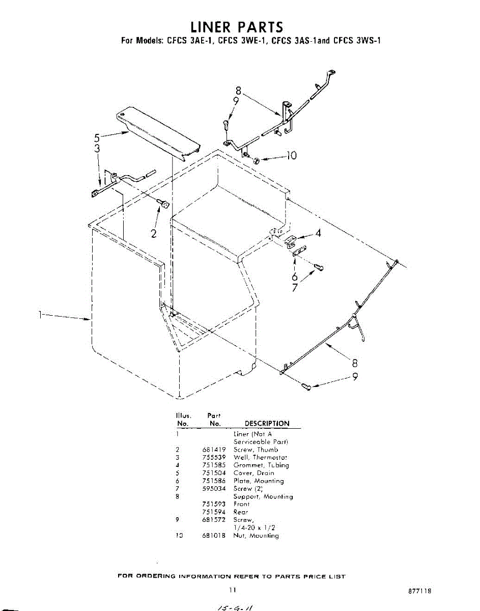 Parts for Whirlpool CFCS3WS1: 11 - Liner Parts