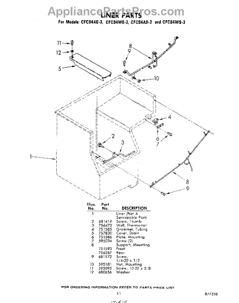Parts for Whirlpool CFCS4WS3: 11 - Liner Parts