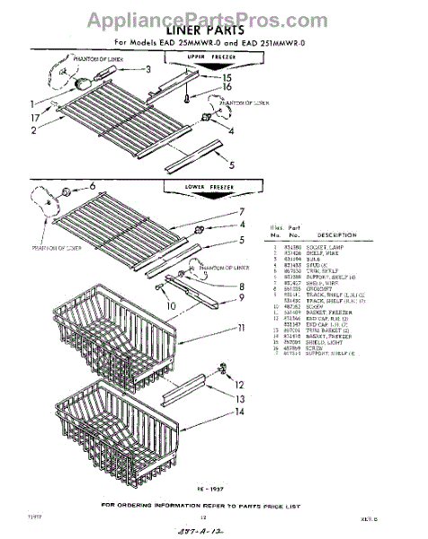 Parts for Whirlpool EAD25MMWR0: 12 - Liner Parts
