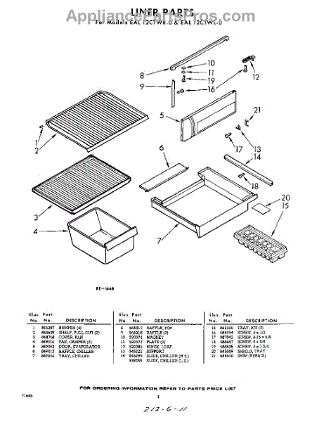 Parts for Whirlpool EAL12CTWR0: 04 - Liner Parts