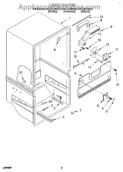 Parts for Whirlpool EB21DKXBB00: 02 - Liner Parts