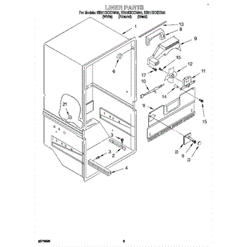 Parts for Whirlpool EB21DKXDB00: 02 - Liner Parts