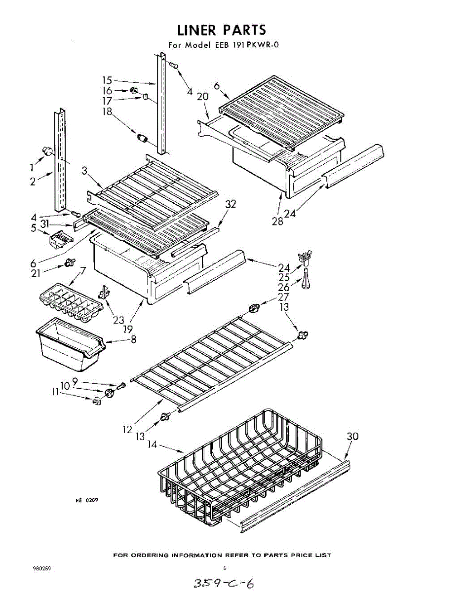 Parts for Whirlpool EEB191PKWR0: 06 - Liner Parts