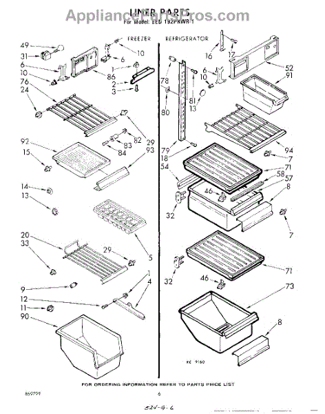 Parts for Whirlpool EED192PKWR1: 06 - Liner Parts