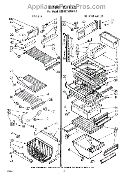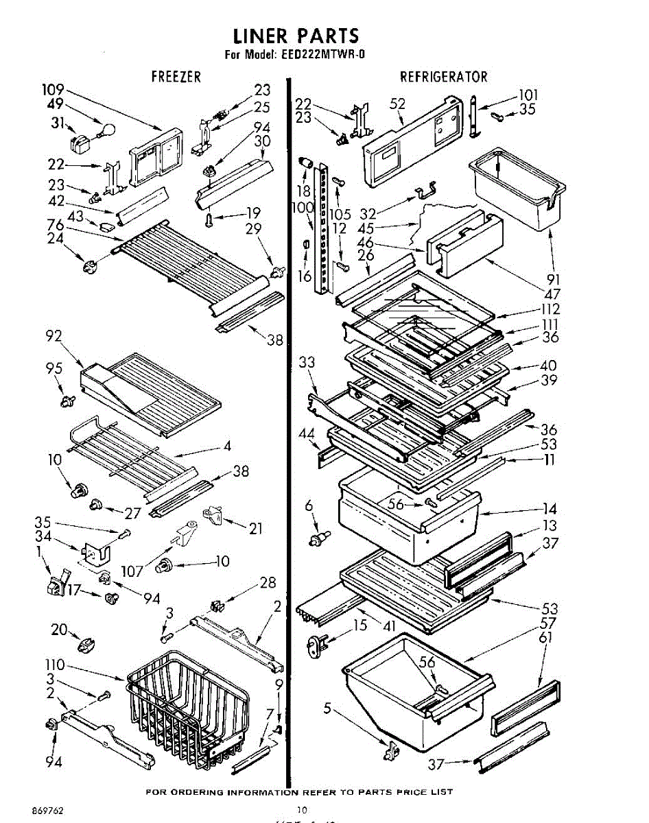 Parts for Whirlpool EED222MTWR0: 10 - Liner Parts