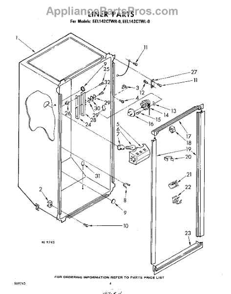 Parts for Whirlpool EEL142CTWR0: 04 - Liner Parts