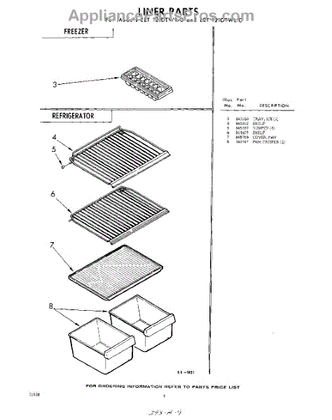 Parts for Whirlpool EET121DTWR0: 09 - Liner Parts