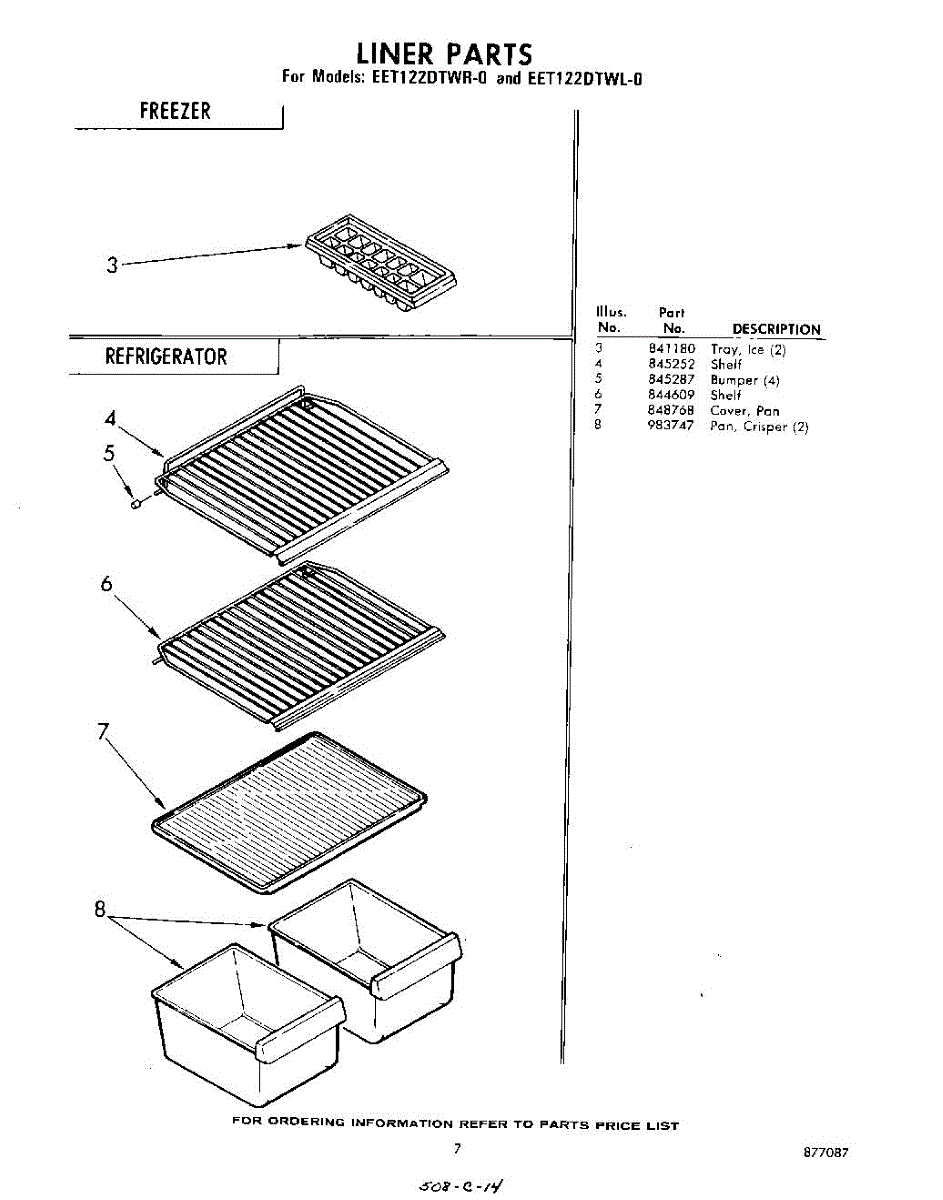 Parts for Whirlpool EET122DTWR0: 07 - Liner Parts