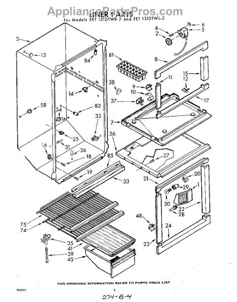 Parts for Whirlpool EET131DTWR2: 04 - Liner Parts