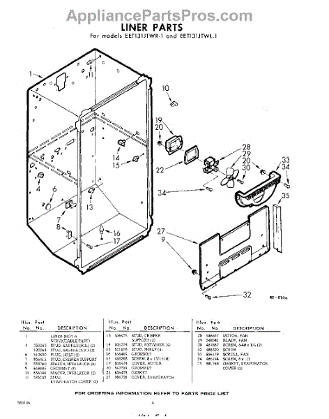 Parts for Whirlpool EET131JTWR1: 04 - Liner Parts