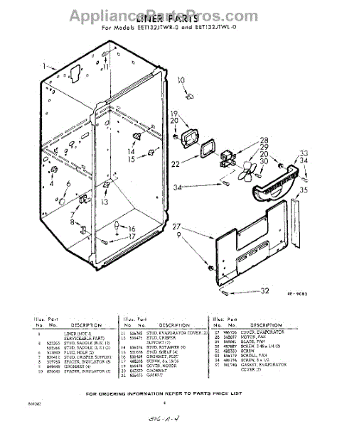Parts for Whirlpool EET132JTWR0: 04 - Liner Parts