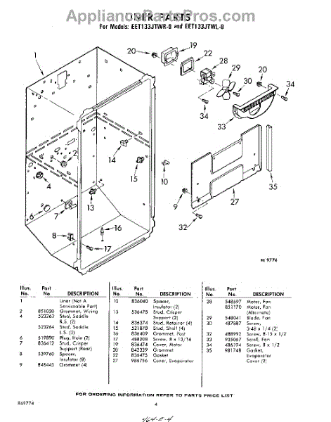 Parts for Whirlpool EET133JTWR0: 04 - Liner Parts