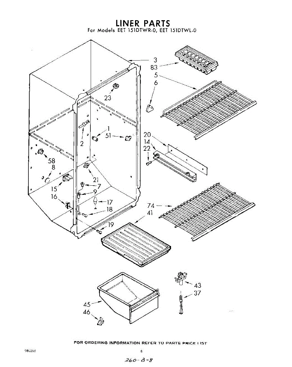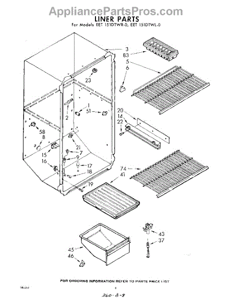 Parts for Whirlpool EET151DTWR0: 08 - Liner Parts