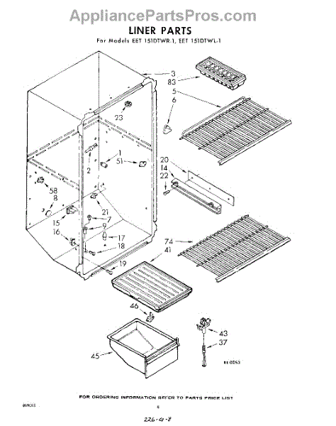Parts for Whirlpool EET151DTWR1: 08 - Liner Parts