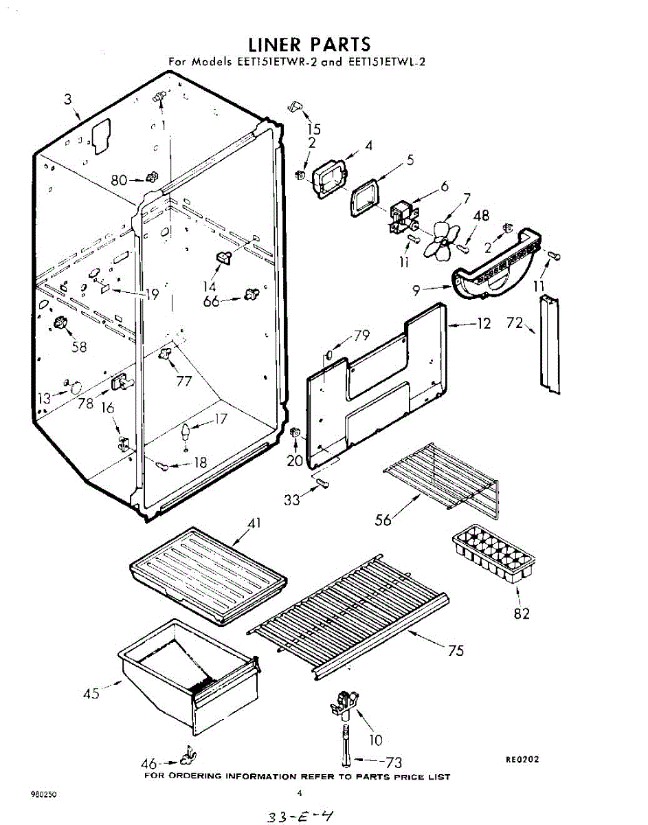 Parts for Whirlpool EET151ETWR2: 04 - Liner Parts