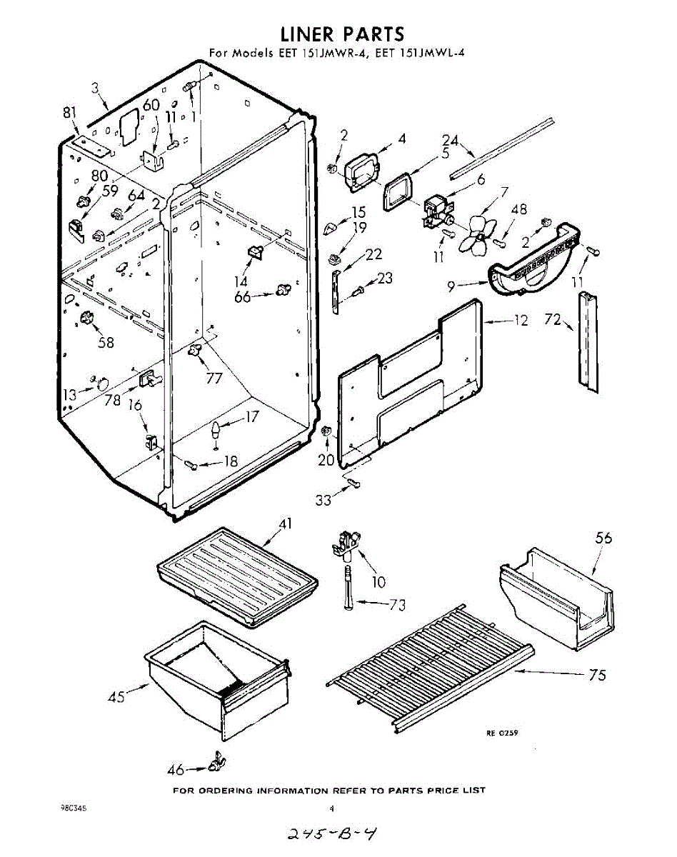 Parts for Whirlpool EET151JMWR4: 04 - Liner Parts