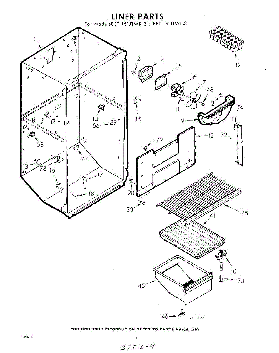 Parts for Whirlpool EET151JTWR3: 04 - Liner Parts