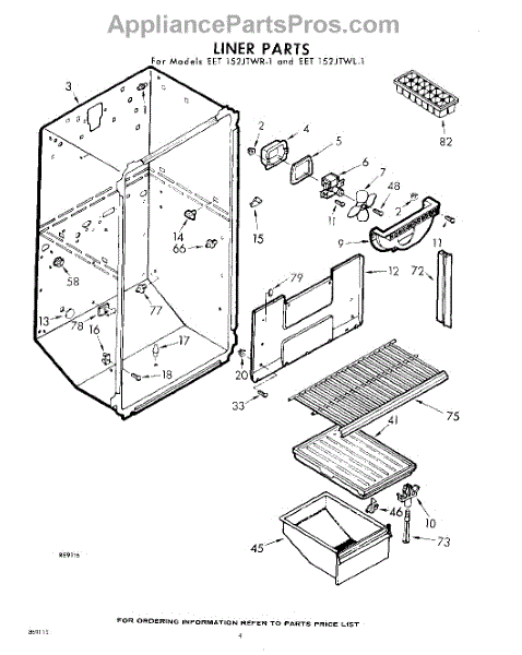 Parts for Whirlpool EET152JTWR1: 04 - Liner Parts