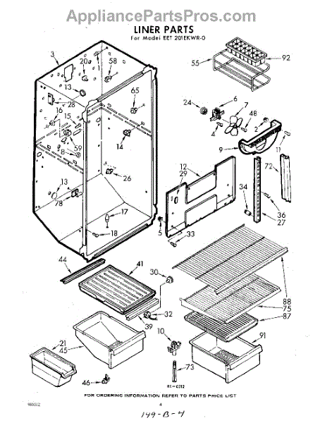 Parts for Whirlpool EET201EKWR0: 04 - Liner Parts