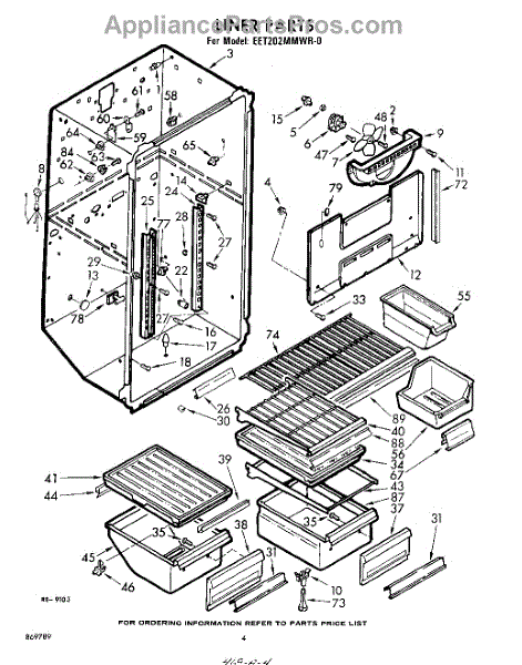 Parts for Whirlpool EET202MMWR0: 04 - Liner Parts
