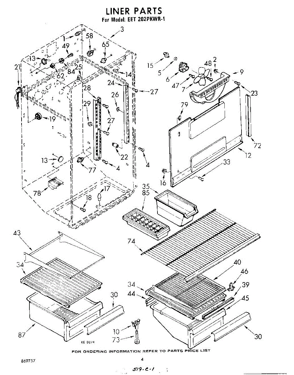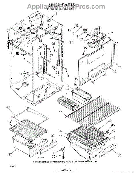 Parts for Whirlpool EET202PKWR1: 04 - Liner Parts
