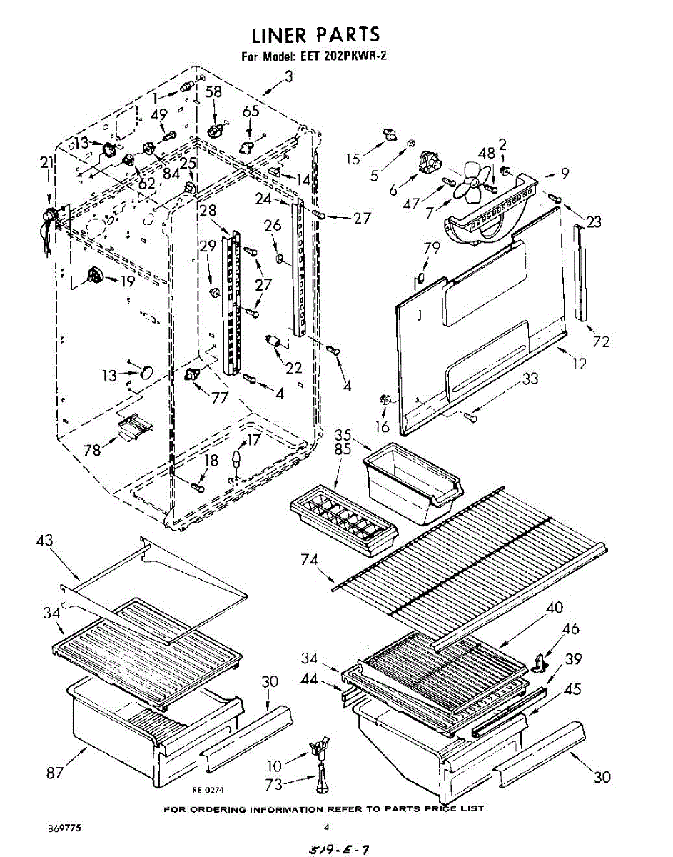 Parts for Whirlpool EET202PKWR2: 04 - Liner Parts