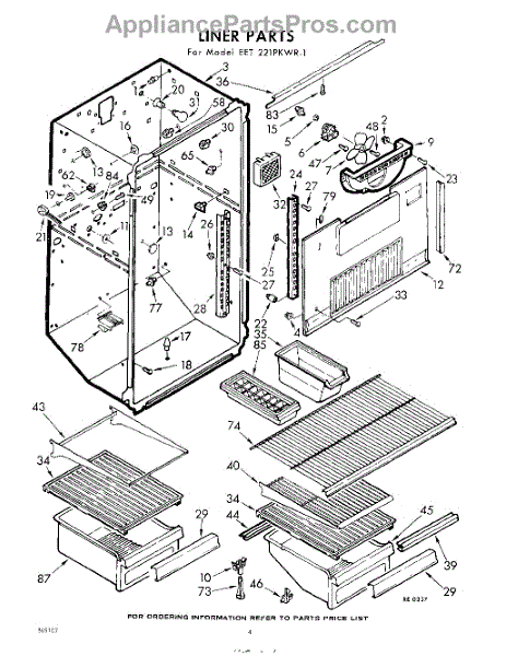 Parts for Whirlpool EET221PKWR1: 04 - Liner Parts