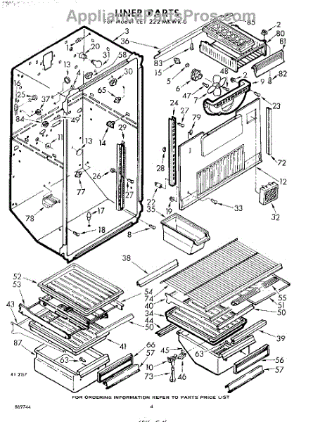 Parts for Whirlpool EET222MKWR0: 04 - Liner Parts