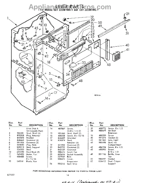 Parts for Whirlpool EET222MTWR1: 14 - Liner Parts