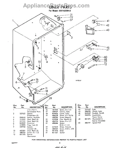 Parts for Whirlpool EEV162EW0: 08 - Liner Parts