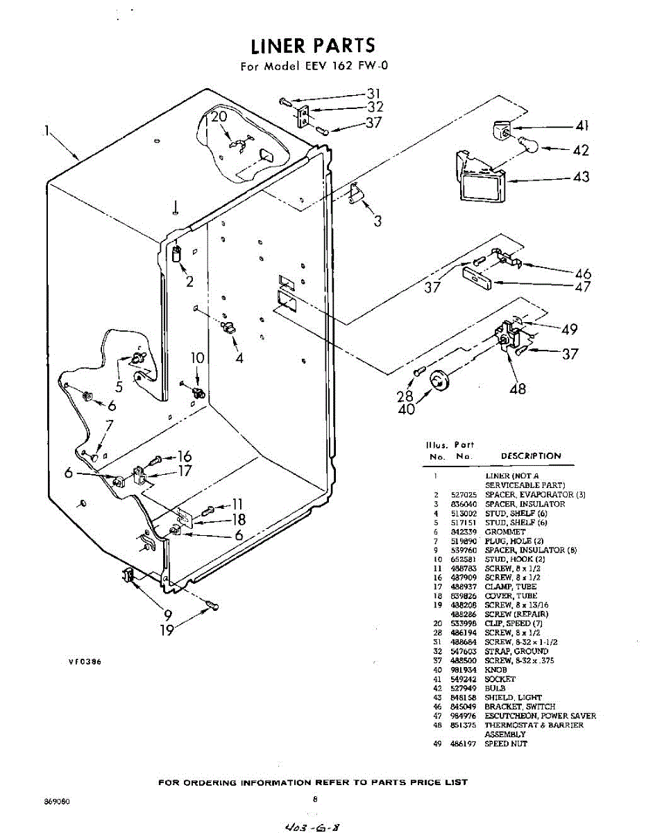 Parts for Whirlpool EEV162FW0: 08 - Liner Parts