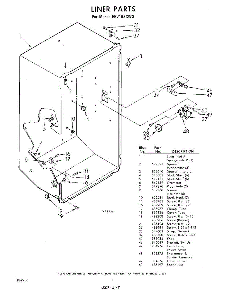 Parts for Whirlpool EEV163CW0: 08 - Liner Parts
