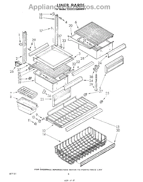 Parts for Whirlpool EHB191MKWR1: 08 - Liner Parts