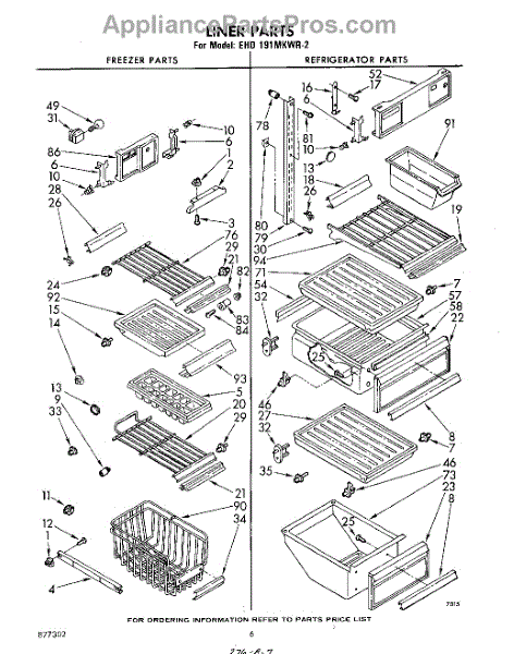 Parts for Whirlpool EHD191MKWR2: 06 - Liner Parts