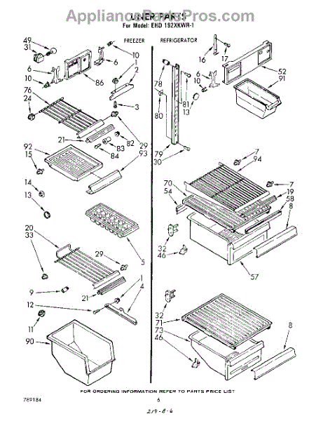 Parts for Whirlpool EHD192XKWR1: 06 - Liner Parts