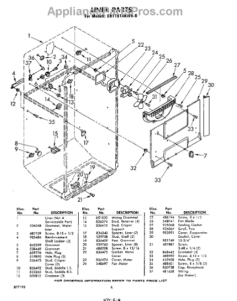 Parts for Whirlpool EHT161AKWR0: 06 - Liner Parts