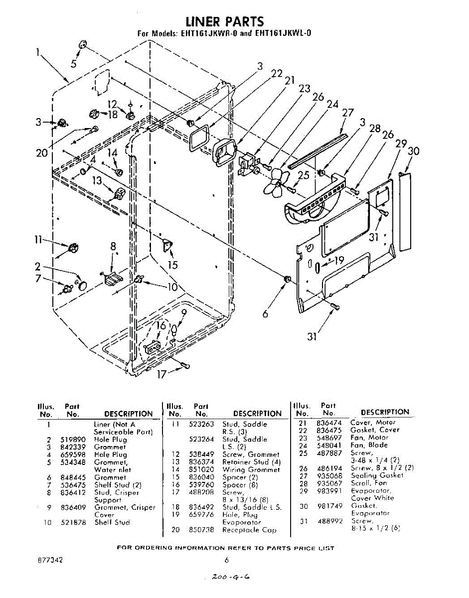 Parts for Whirlpool EHT161JKWL0: 06 - Liner Parts