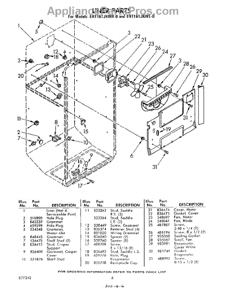 Parts for Whirlpool EHT161JKWR0: 06 - Liner Parts