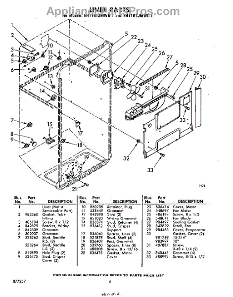 Parts for Whirlpool EHT161JMWR1: 06 - Liner Parts