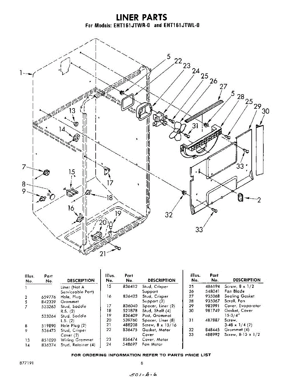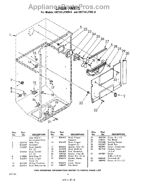 Parts for Whirlpool EHT161JTWR0: 06 - Liner Parts