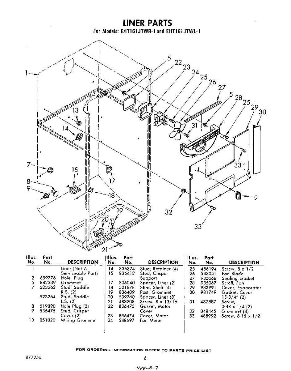 Parts for Whirlpool EHT161JTWR1: 06 - Liner Parts